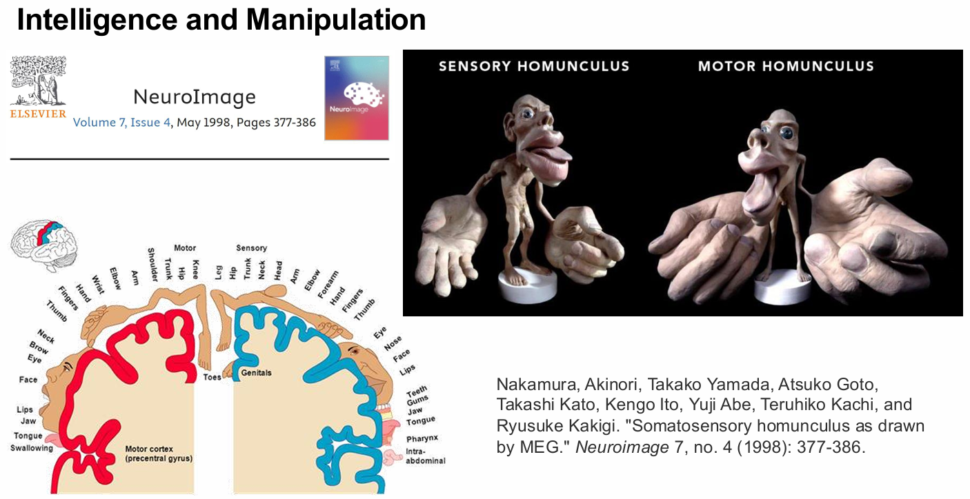 这些模型突出了手、嘴唇、舌头等部位在感知与操控中的重要性。