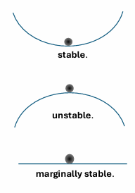 - 在山顶 → 轻微扰动即滚下 → 不稳定;